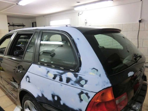Byla použita 5letá broušená černá metalická Avery Supreme folie na auto