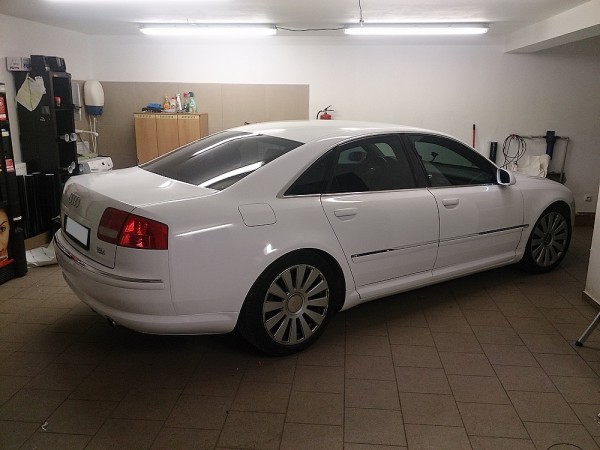 Byla použita 5letá bílá perleťová KPMF folie na auto