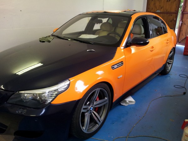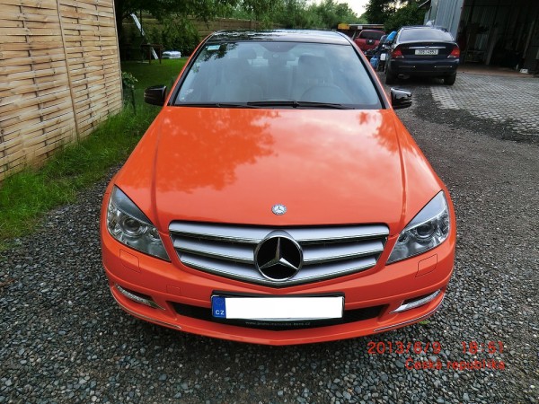 Byla použita 5letá oranžová lesklá KPMF folie na auto